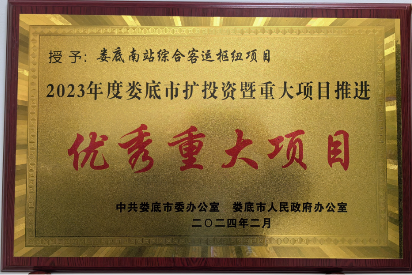 攻堅(jiān)實(shí)干,奮楫爭(zhēng)先——婁底南站綜合客運(yùn)樞紐項(xiàng)目再次榮獲市優(yōu)秀重大項(xiàng)目稱號(hào)
