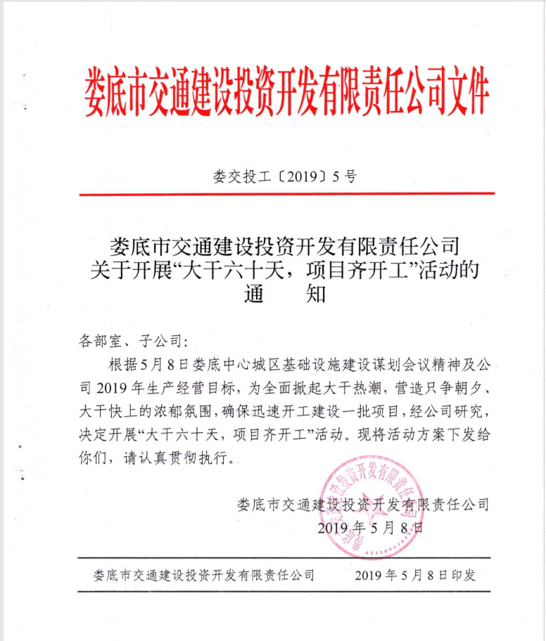 “大干60天,項目齊開工”活動時間為2019年5月1日至6月30日,重點開工建設公司4個項目,2個項目及1個子項目前期工作取得實質(zhì)快速進展;顒臃譃闇蕚洹⒋蟾、總結(jié)三個階段,準備階段要求各責任單位根據(jù)活動總目標,倒排工期,制定以周為單位、主要工作節(jié)點細化到具體日期的工作計劃,并層層落實、責任到人;大干階段要求根據(jù)活動要求、時間節(jié)點及具體工作計劃組織全面實施,掀起大干熱潮,確保實現(xiàn)活動既定目標;總結(jié)階段要求活動結(jié)束后,各責任部室及子公司要對工作完成情況進行認真自查、總結(jié),并在此基礎上安排好后續(xù)工作。